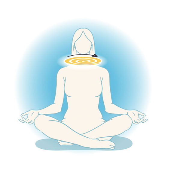 Очищується система проти годинникової стрілки, коли ви направляєте вібрації проти цілого сегмента. Якщо ви відчули головний біль, то є переповненість поля, засміченість, накопичення негативних програм. Між потиличною частиною і третім оком вибудовуєте систему сфери нескінченності (вісімки), направляєте проти годинникової стрілки, творите коло, інший, щоб очистити ці форми.